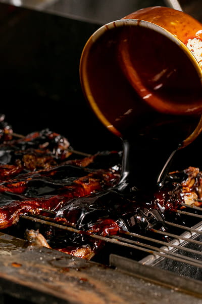 「川八」から受け継いだタレは100年以上もの間、日々継ぎ足し続けることで、うなぎのコクが染み込み、深い味わいに。甘くて濃いうなぎ用とすっきりとした甘さのご飯用の2種類のタレを使い分けております。